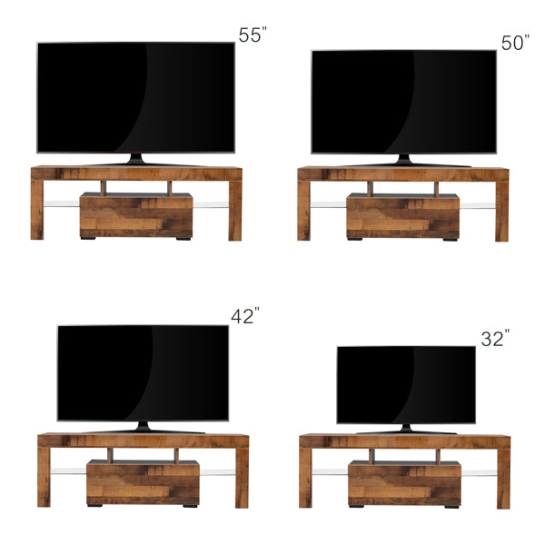 TV Stand with LED RGB Lights, Flat Screen TV Cabinet, FIR WOOD